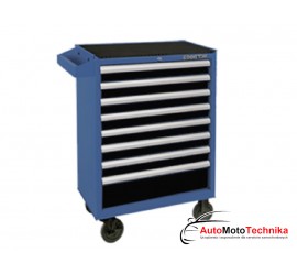 Wózek z 190 narzędziami w 8 wkładkach Opis wózka: Wymiary ogólne wózka: z kółkami: wys.98 x szer. 67 x gł. 46 cm bez kółek: wys. 81 x szer. 67 x gł. 46 cm7 szuflad o wymiarach: 576 x 380 x 75...